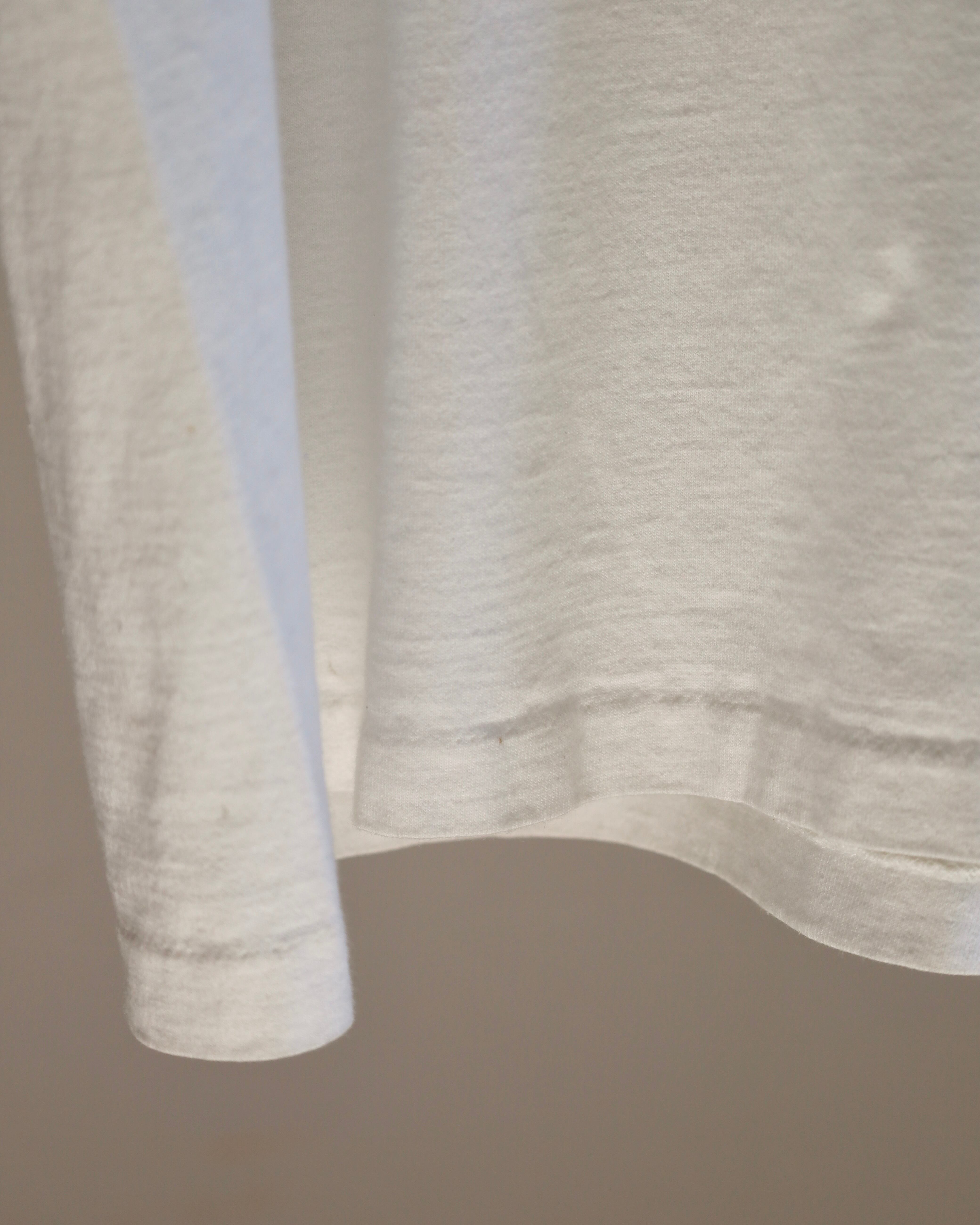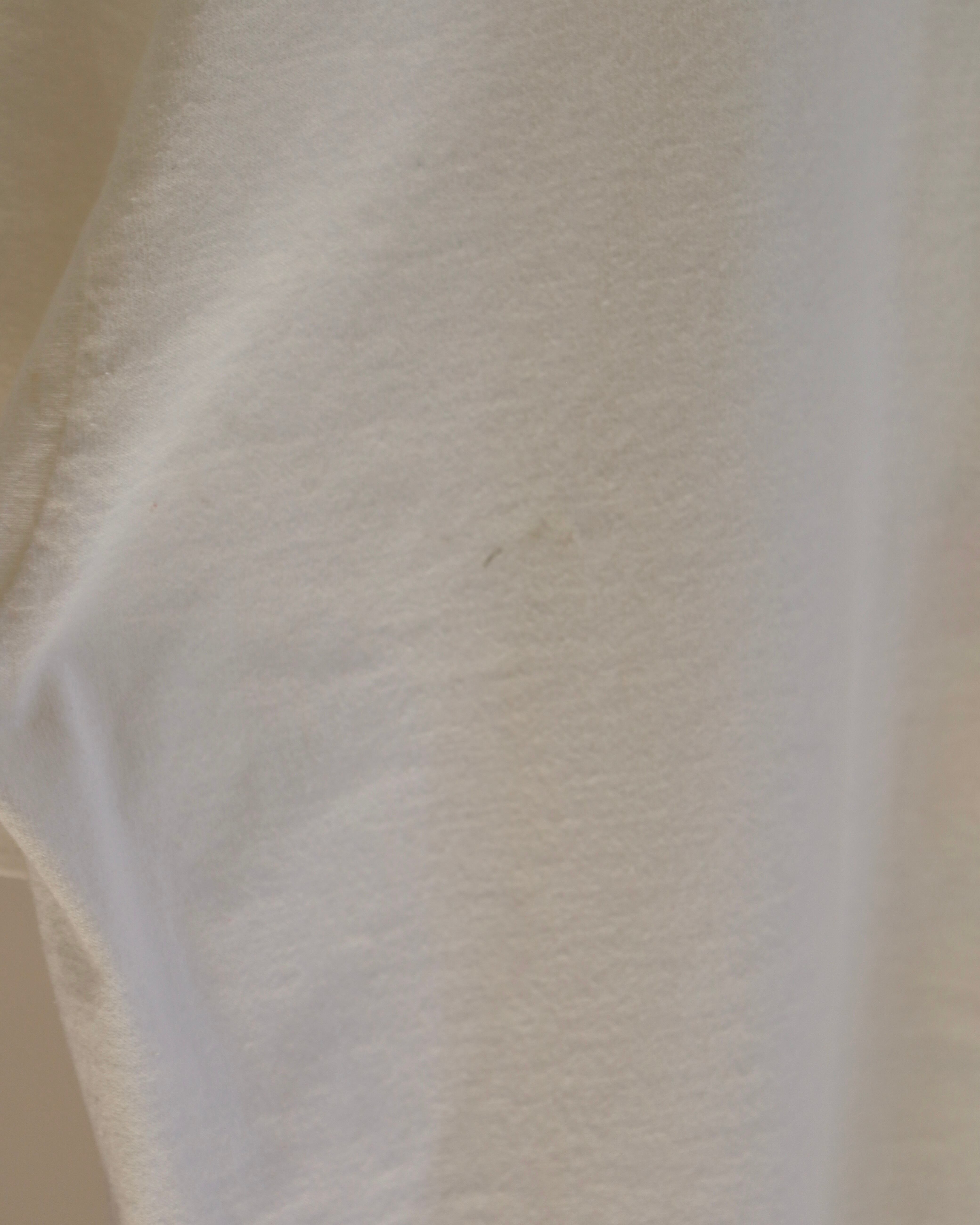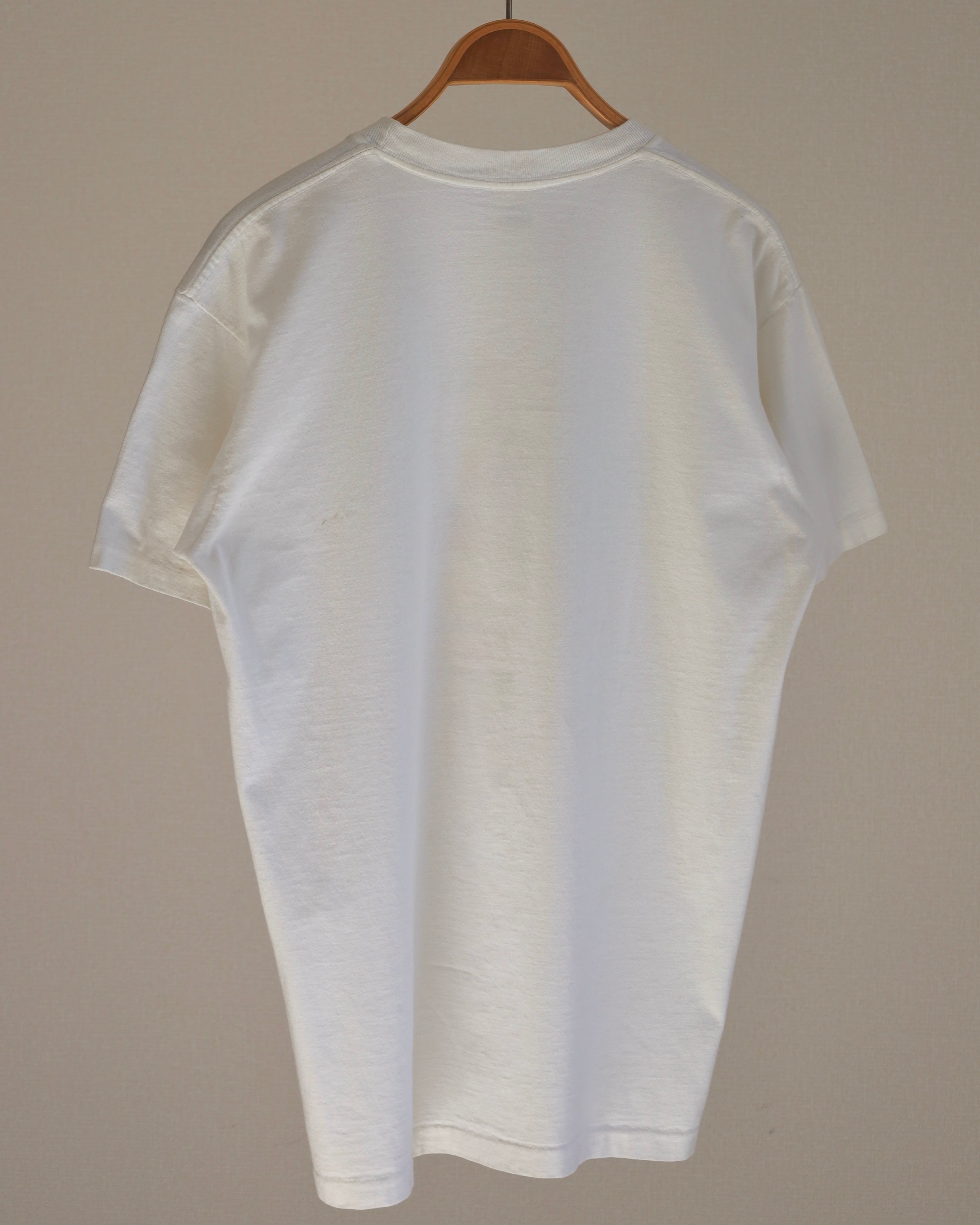 セント・パトリックス・デー(St. Patrick’s Day)はアイルランドの守護聖人を祝う3月17日の祝祭。緑色(シャムロック)を身に着ける“Wearing of the Green”の習わしがあり、米国でもパレードやビールイベントで盛り上がるため、当時のローカルイベントTは人気のテーマです。本作は“Rally in the Alley / Washington, D.C.”のグラフィックで、レプラコーンとビアジョッキのポップなデザイン。軽めで柔らかな80sボディ、袖・裾はシングルステッチ。発色の良いグリーン×イエローが白地に映える一枚です。