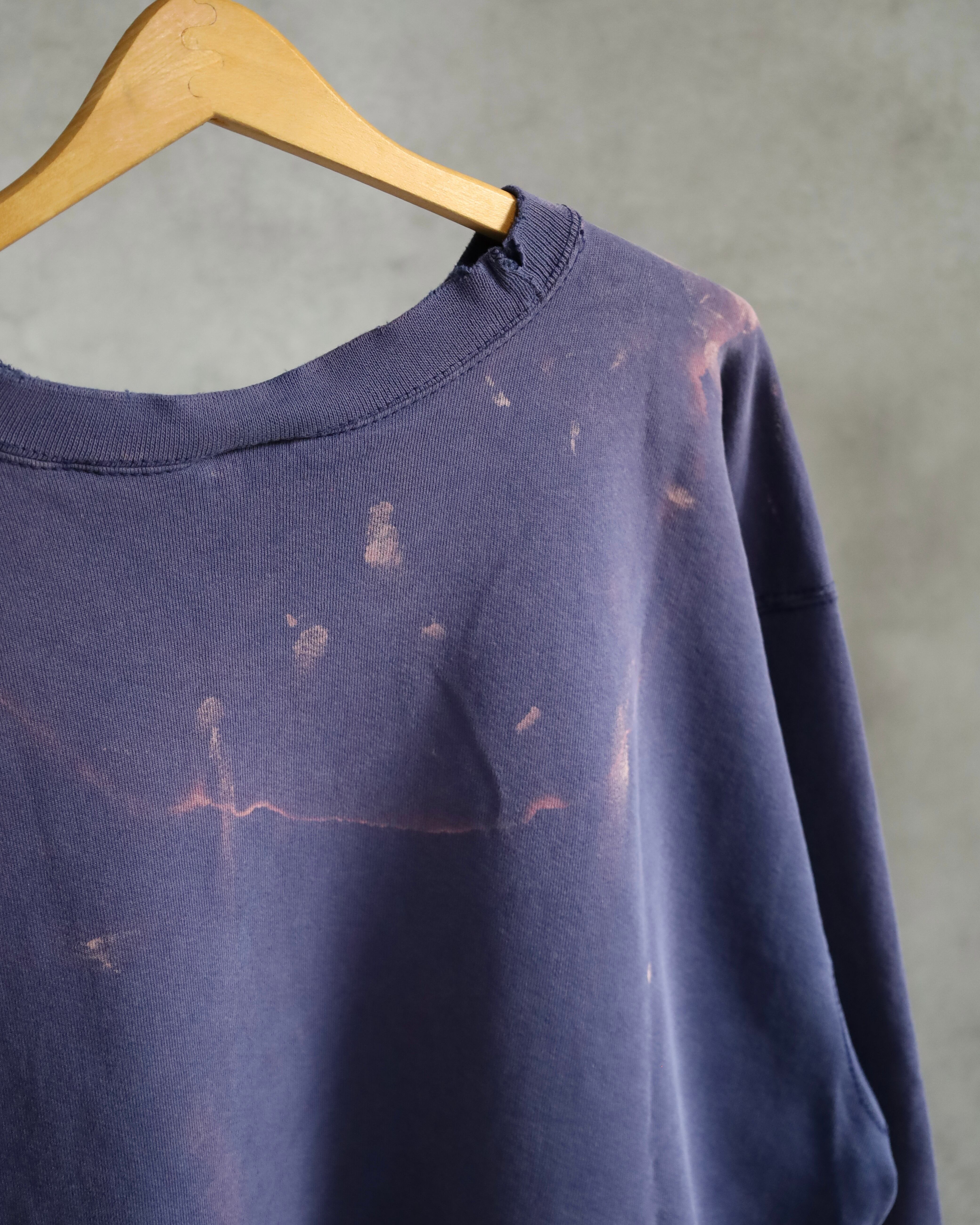 フェードしたネイビーボディに、ブリーチ痕やダメージが重なったヴィンテージならではの表情も魅力。着用によって生まれた経年変化が一点物の雰囲気を作り出しています。