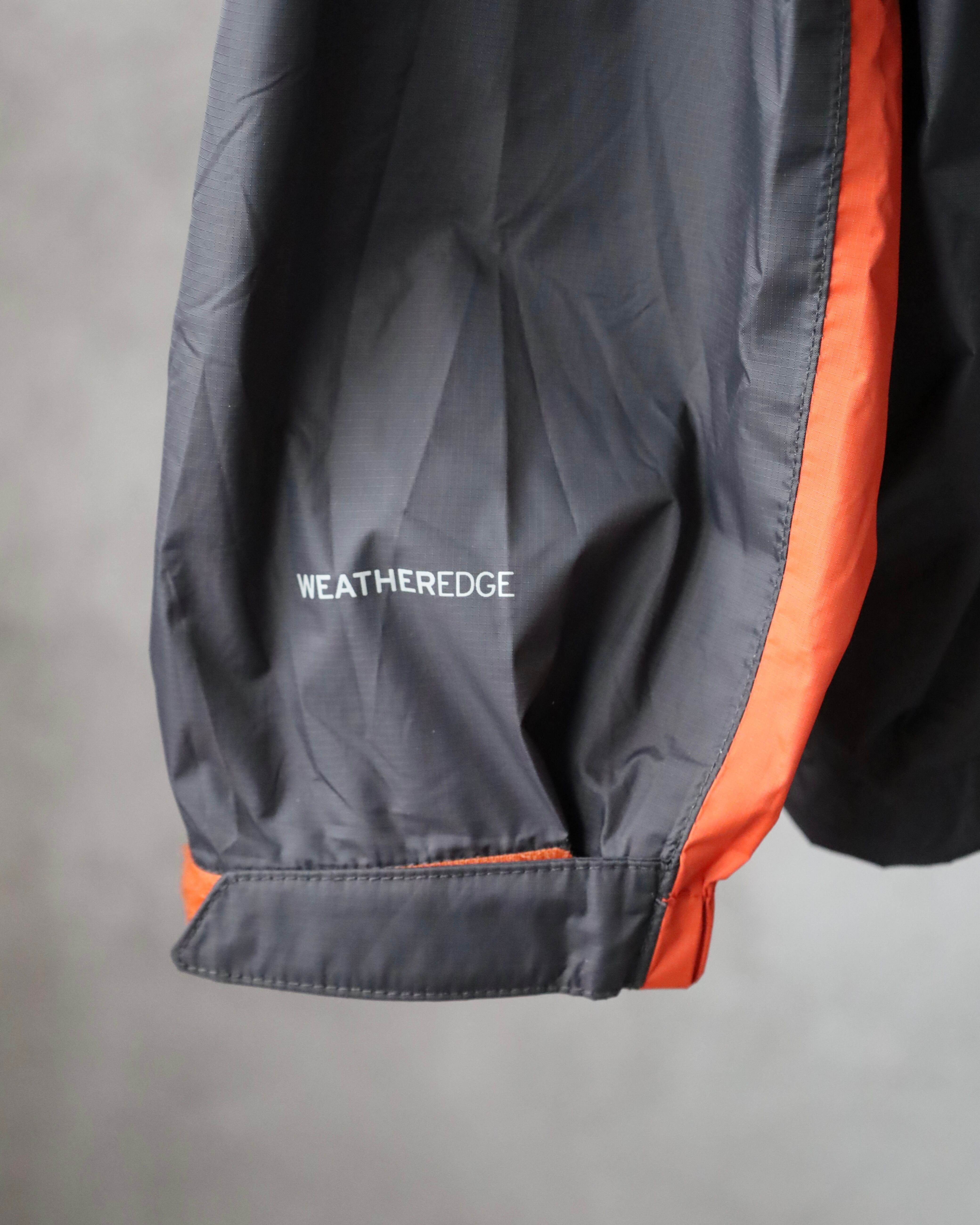 袖にはWEATHEREDGE表記が入り、防水・防風性を備えたアウトドアシーンにも適したアイテムです。