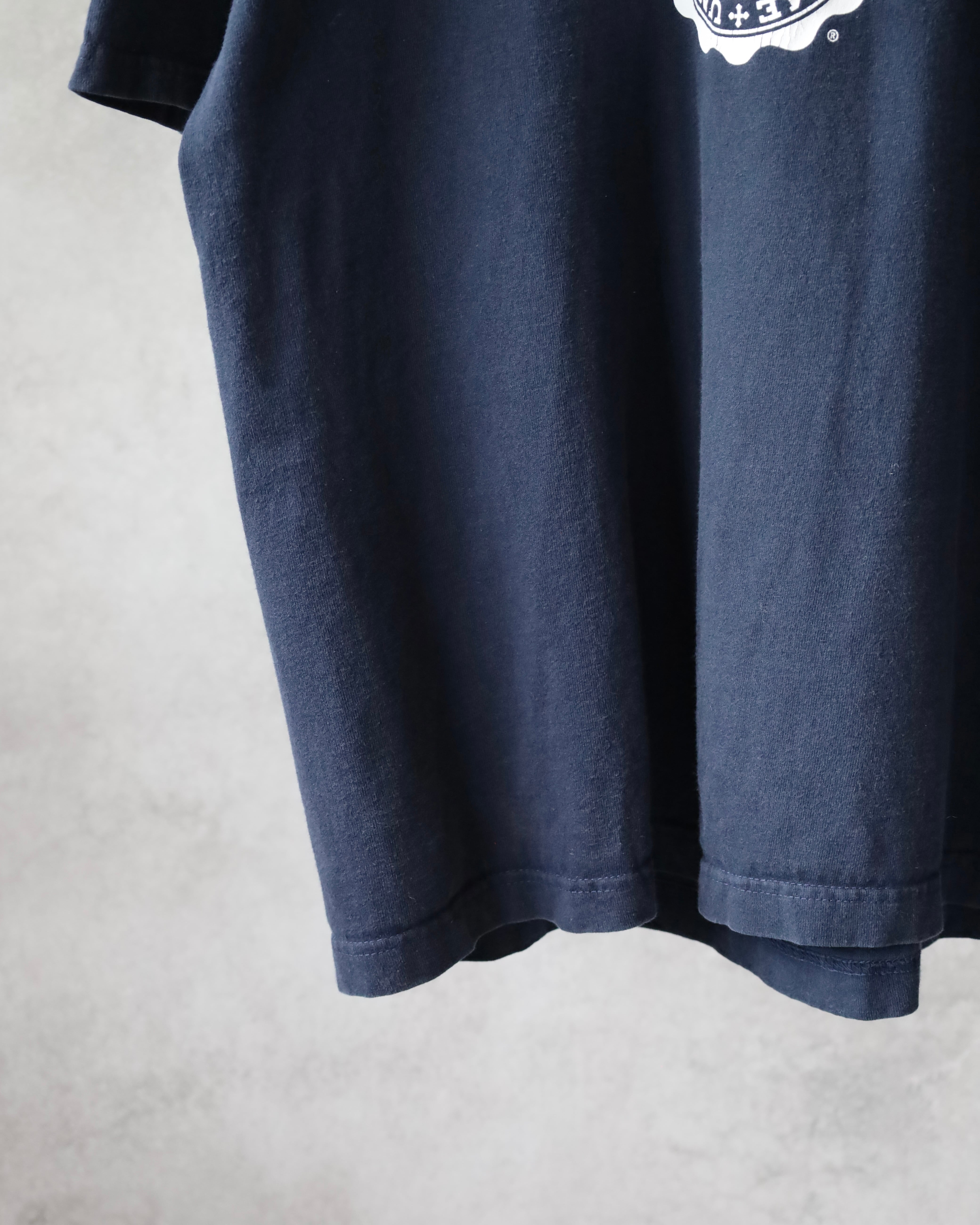 白プリントが映えるネイビーボディで、主張はありつつも落ち着いた印象にまとまっています。