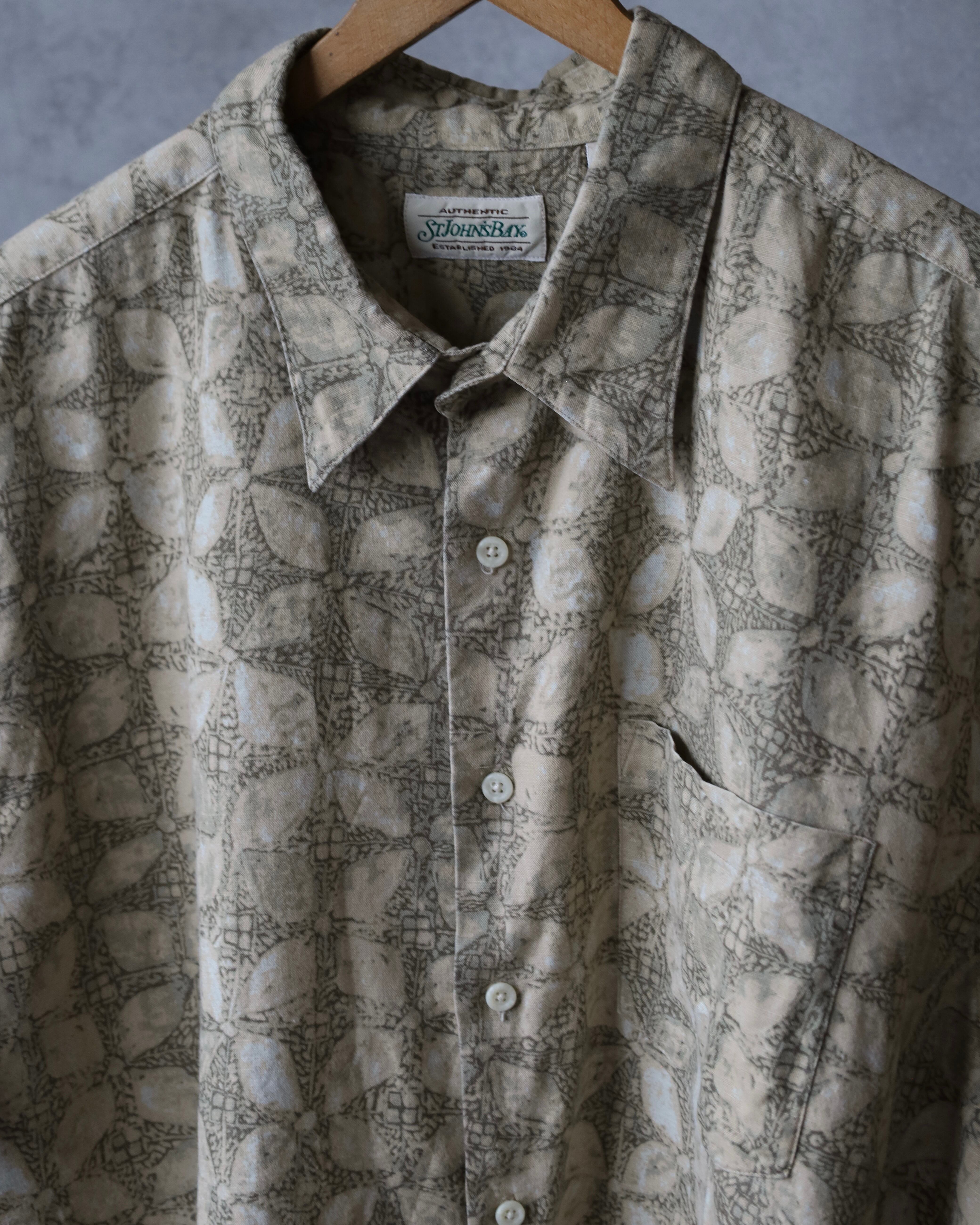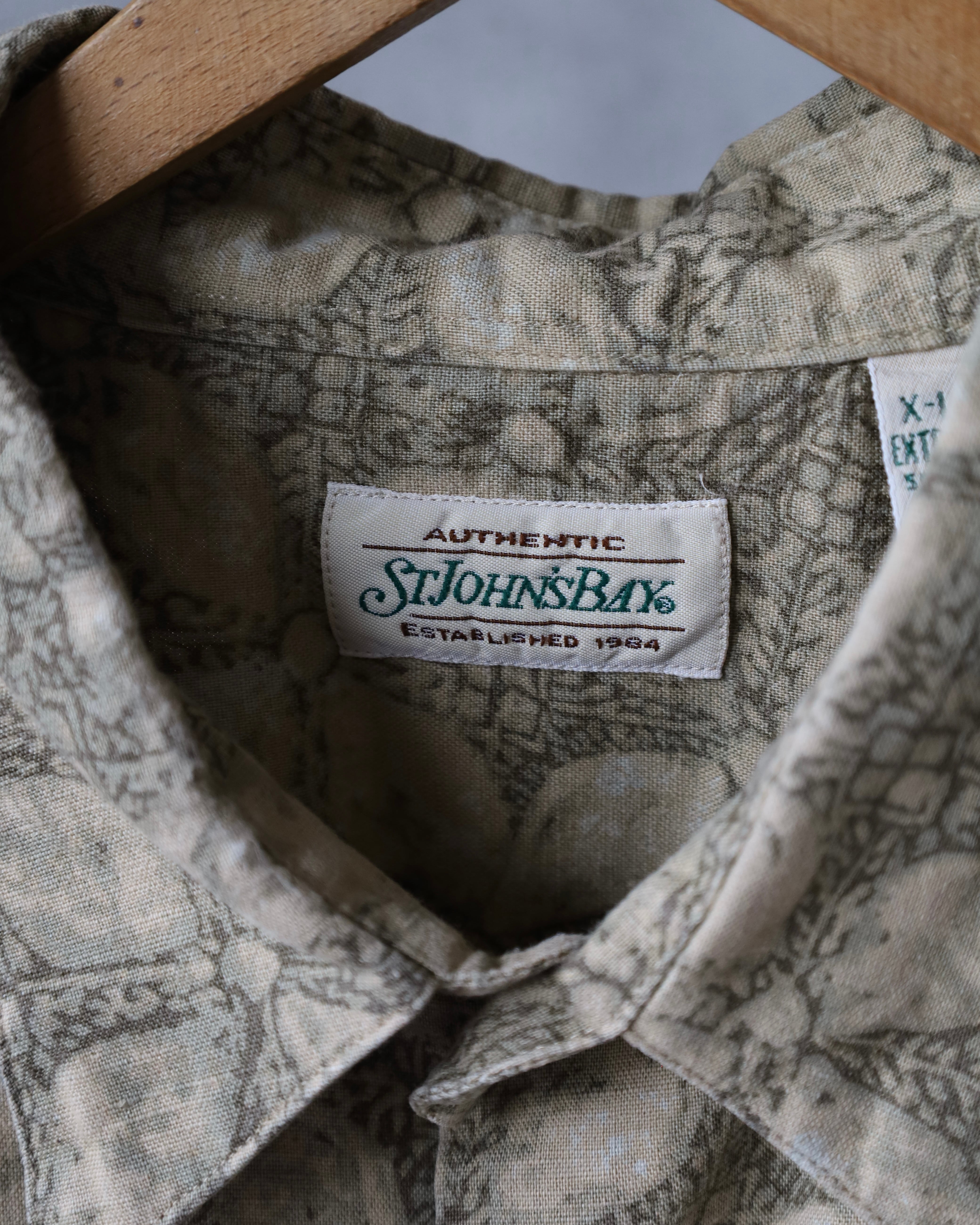 90s St John's Bay リネンコットン 総柄 半袖シャツ